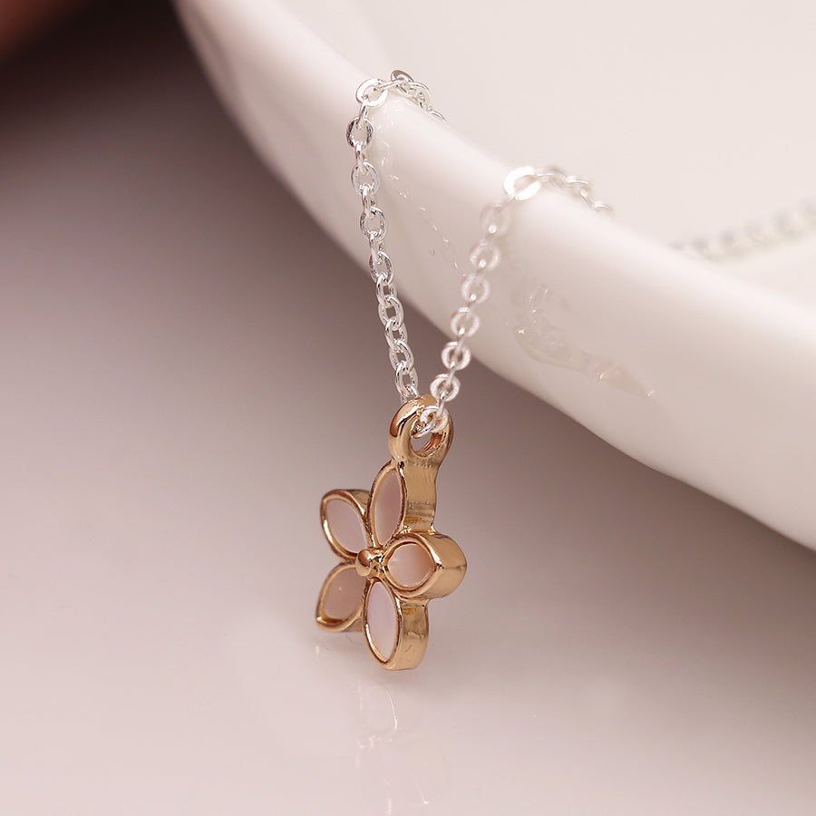 Shell Flower Pendant Necklace - Silver &Gold Plated