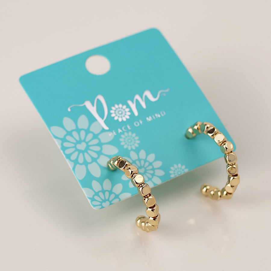 Faux gold plated c-post hoop earrings with mini cube beads.