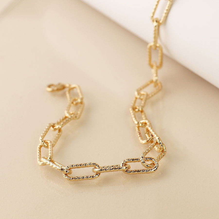 Faux gold plated paperchain link necklace with fine textured surface detail.