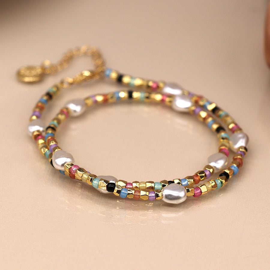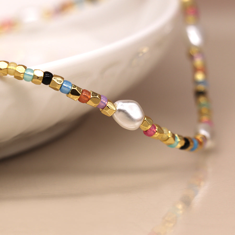 Multi-coloured Bead & Freshwater Pearl Adjustable Necklace