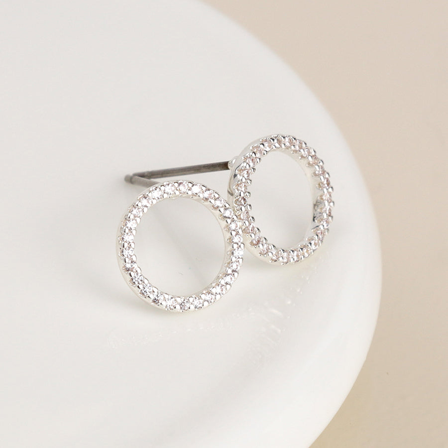 Silver plated stud earrings with simple pave crystal hoops