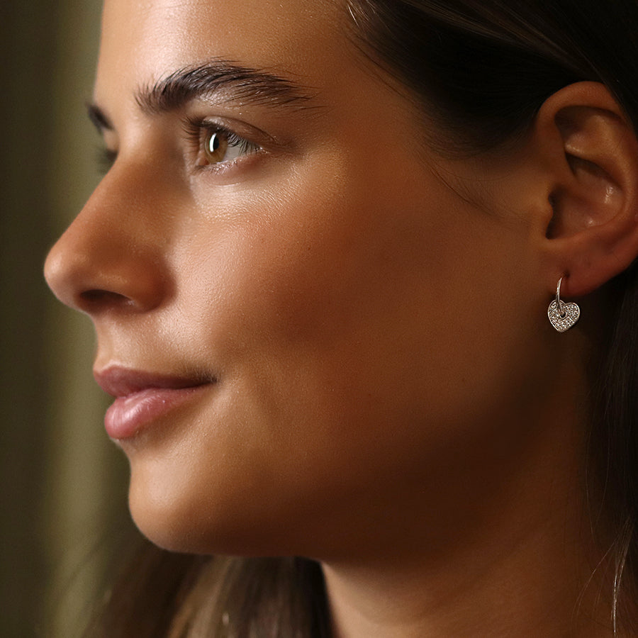 Crystal Heart Hoop Earrings - Silver Plated