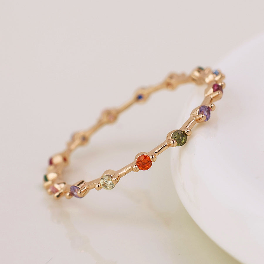 Fine Ring With Multi-Colour Crystals - Gold Plated