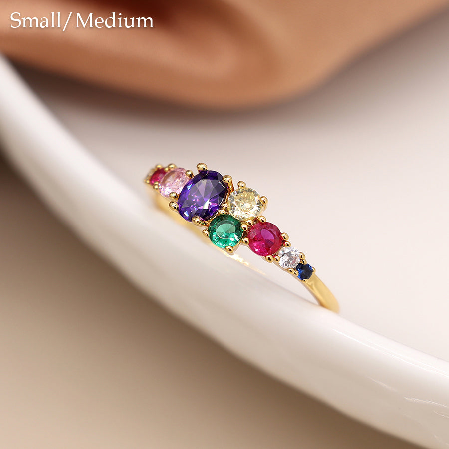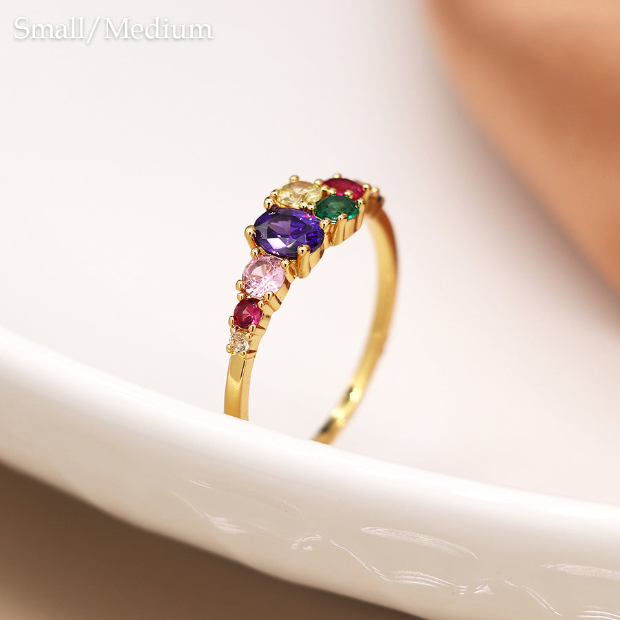 Multi-Coloured Oval Stone Ring - Yellow Gold Plated