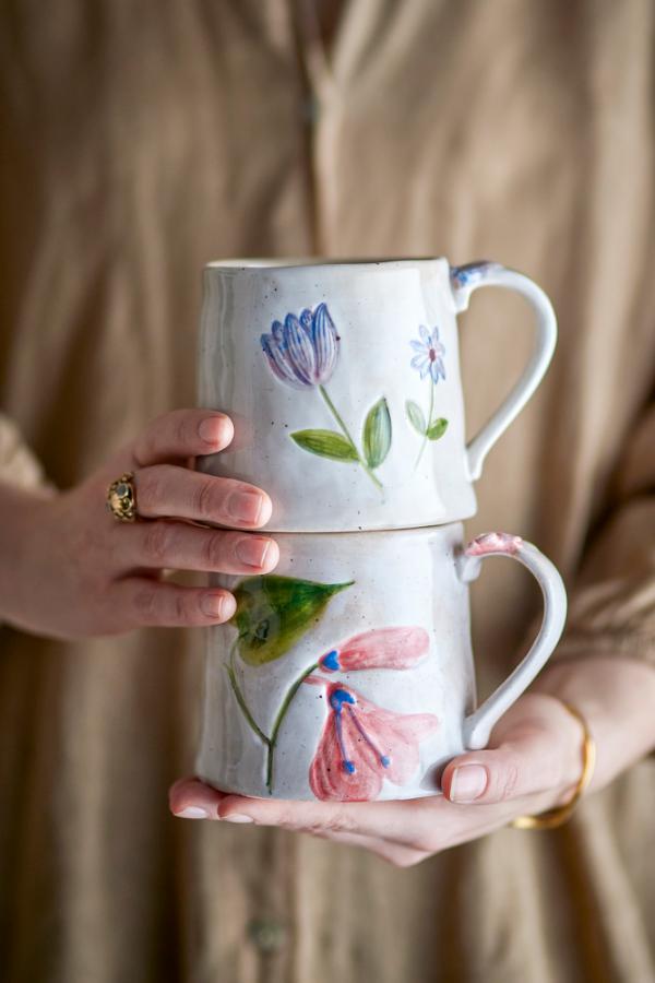 The Camilla Mug by Creative Collection is a set of two stoneware mugs. Featuring a softly speckled beige base with floral details in muted tones, each piece is finished with a reactive glaze. Small variations in pattern and color intensity may occur, making each piece unique.