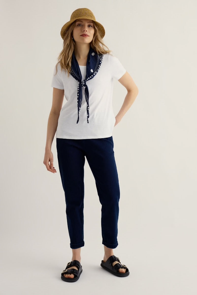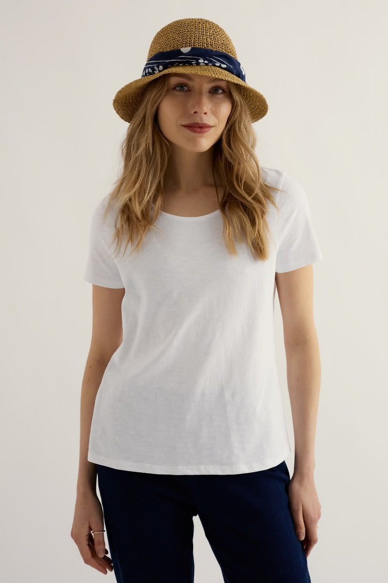 A simple scoop neck T-Shirt made from GOTS-certified organic cotton. Perfect for balmy summer days, or worn as a breathable layer when there's a breeze: the colours are designed to pair perfectly with this season's prints and patterns.