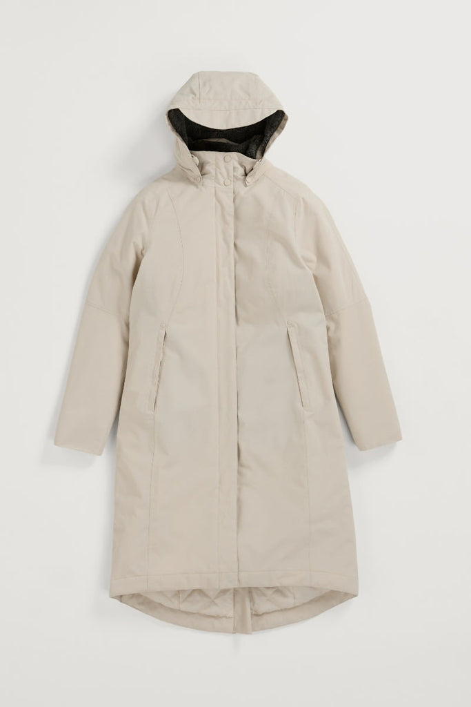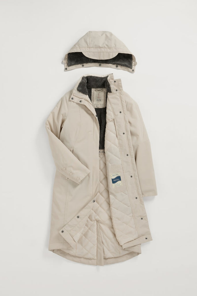 Made to last from year to year, our much-loved Janelle raincoat has a recycled nylon Tide Cycle® outer. Its relaxed shape allows for plenty of cosy layers underneath, and it falls to the knee for extra coverage. The upper half is lined with soft recycled fleece, while quilted lining at the bottom gives you ease of movement as well as warmth. Designed for the Cornish elements, the detachable hood has a peak to protect your face, and there are reflective strips for cloudy days and nighttime walks.