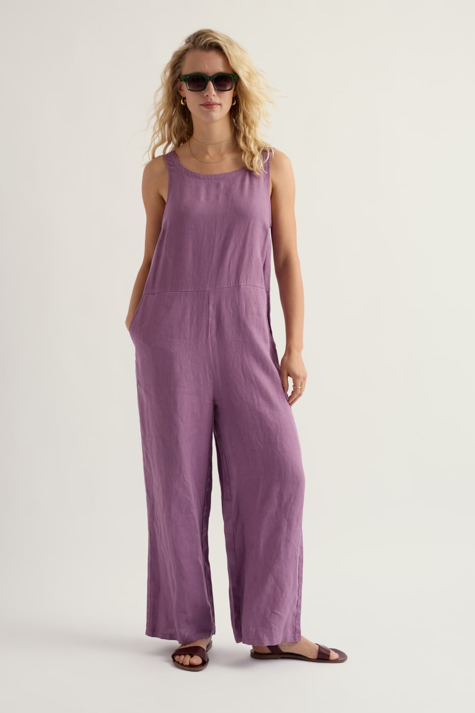 Our popular Salt Air Jumpsuit, cut for a comfortable fit with a relaxed wide leg. The simple shape is perfect for layering over crisp T-shirts or long sleeve tops. We’ve finished it with button detailing at the shoulder and a V cut back.