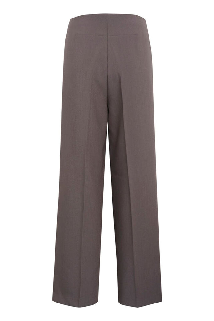 Trousers in a stretchy material with extra width in the legs and a zipper and button closure at the front. The pants have pleats and elastic at the waist and feature a regular fit. The model is wearing a size M.