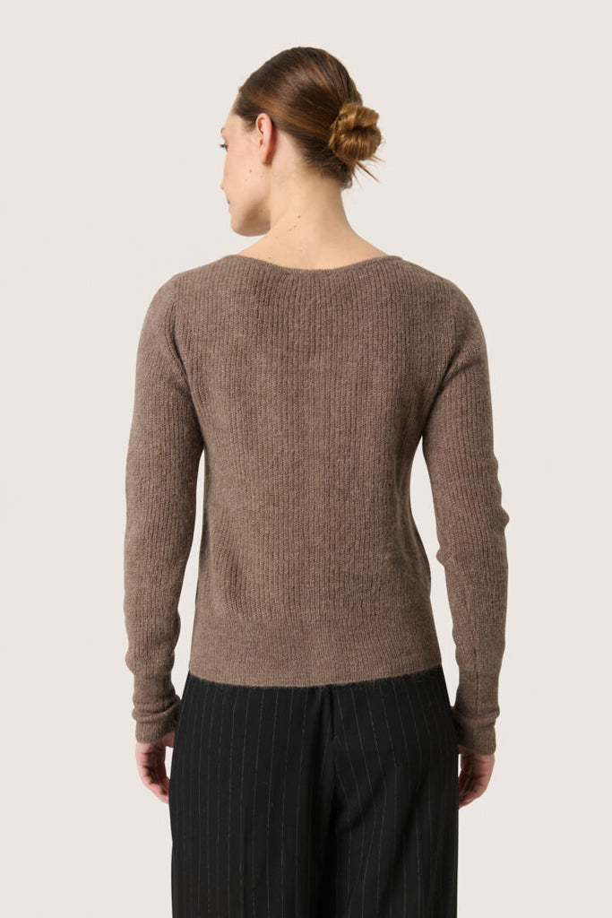 The Tuesday Petit Cardigan features a slim fit and elegant ribbed fabric that enhances its refined look. With its round neck and decorative buttons, this regular-length piece offers a subtle yet sophisticated style, perfect for layering with ease.