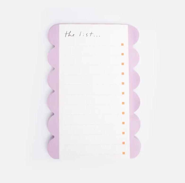 A stylish list pad with a lilac scalloped edge. Ideal for jotting down to-do lists, reminders and notes throughout the day.