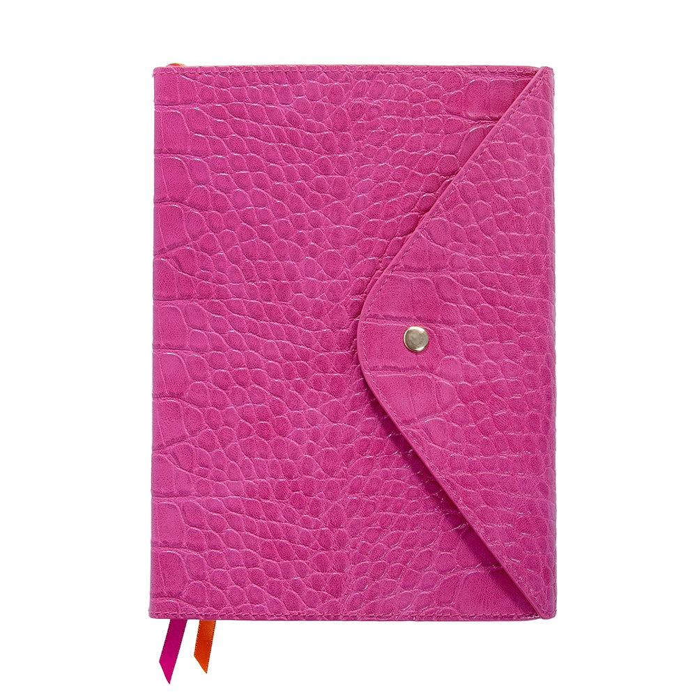 This stylish notebook in bold pink with an embossed croc texture and practical envelope closure is the perfect companion for your notes.