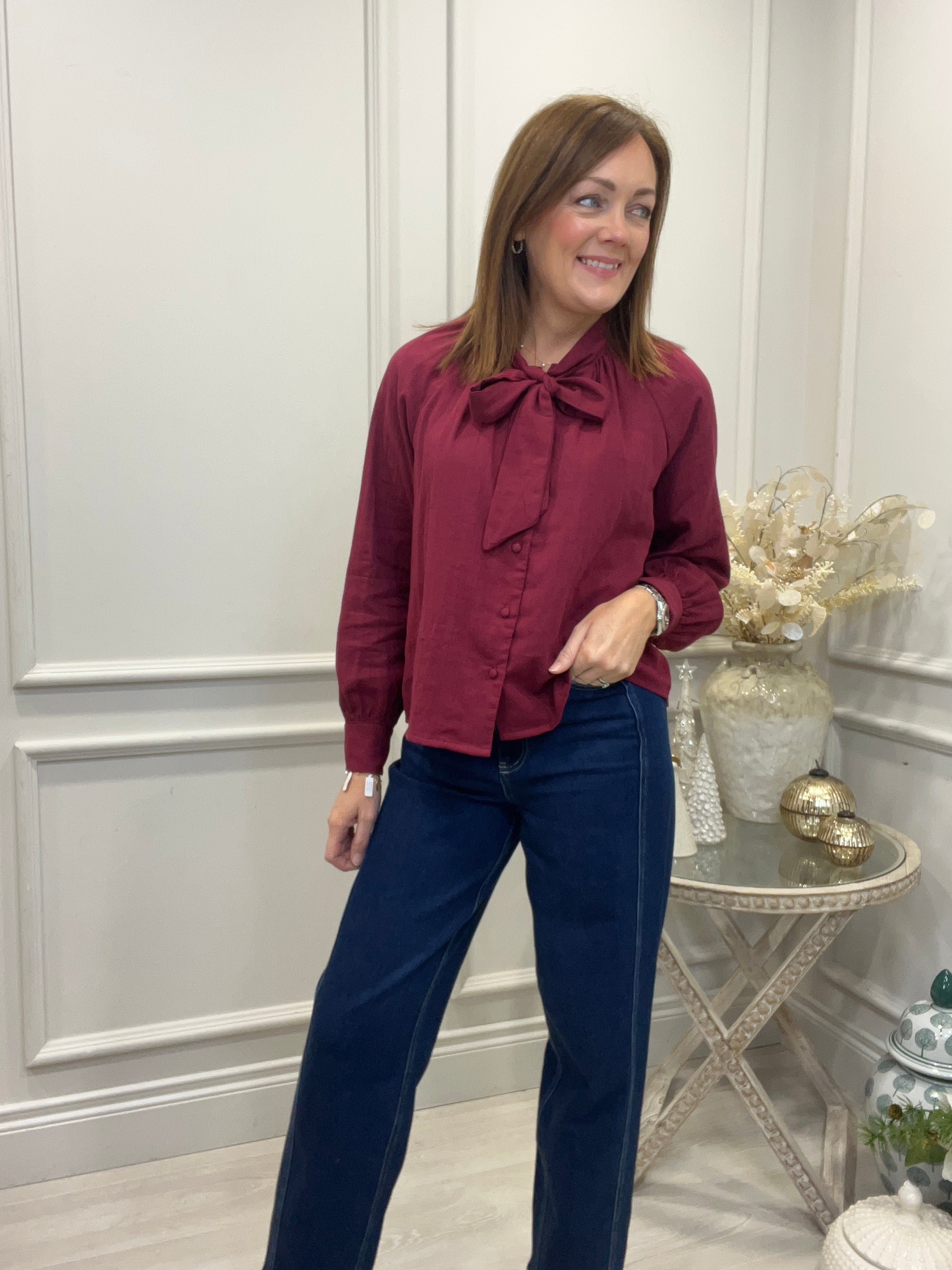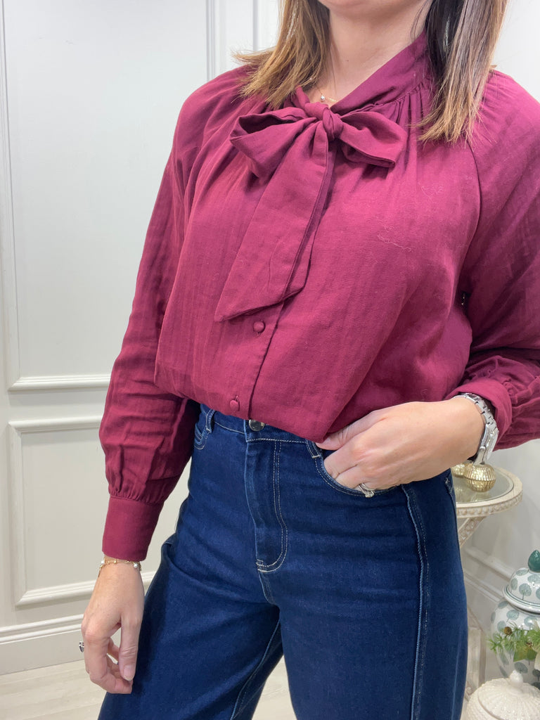 Burgundy Bow Blouse