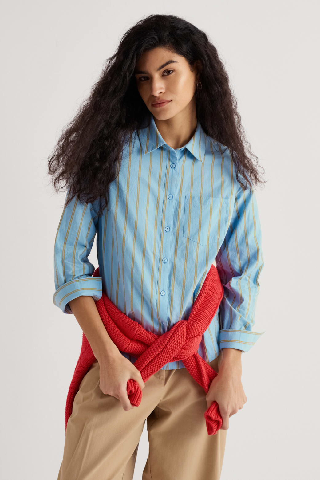Our Isla Shirt is a fresh twist on a wardrobe staple, with a simple, semi-fitted shape and a classic collar. Complete with elegant details: gathered sleeves, an oversized workwear-inspired pocket, and a split hem for easy layering.