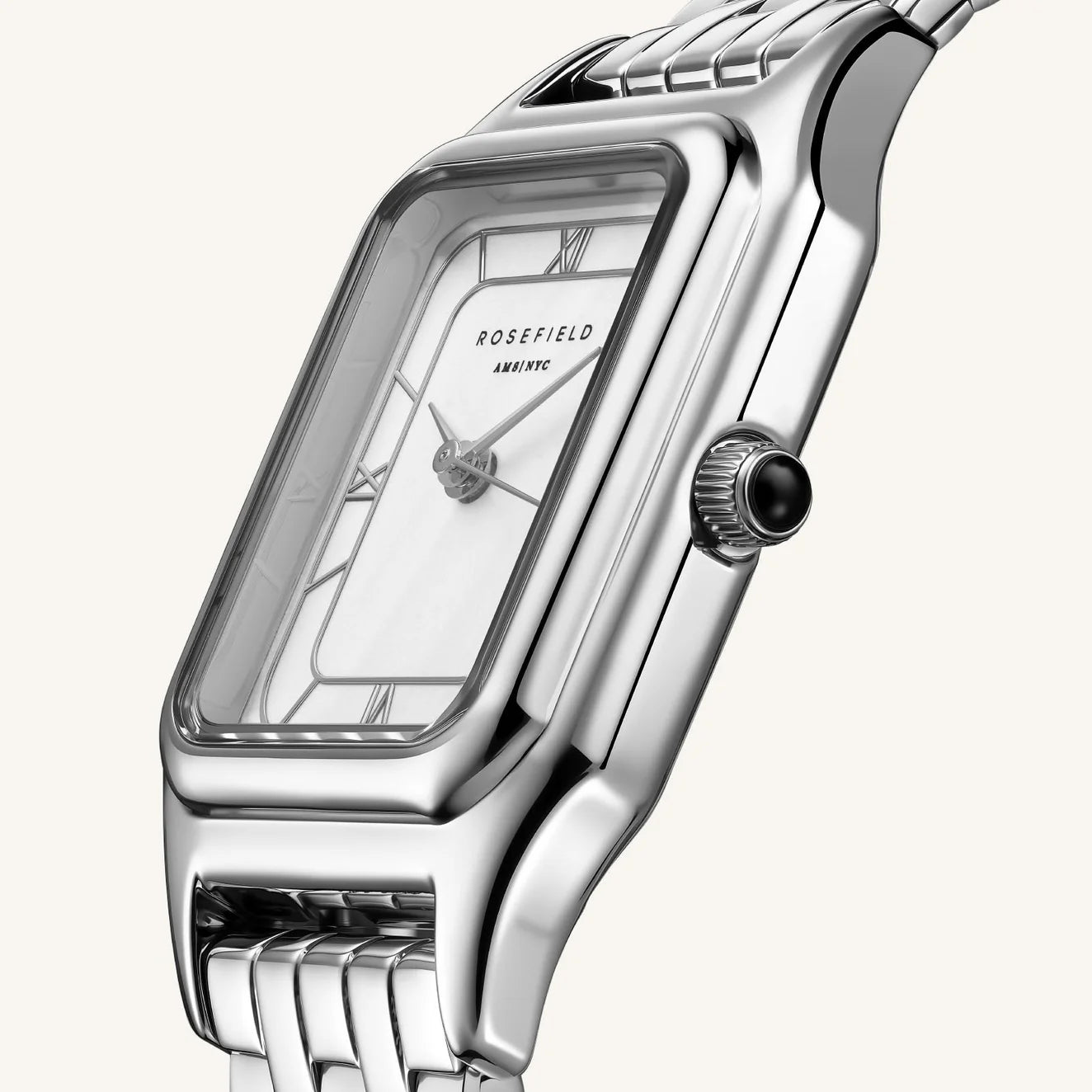 Stunning Cartier inspired watch with a boxy look. Matte white face with black dial.
